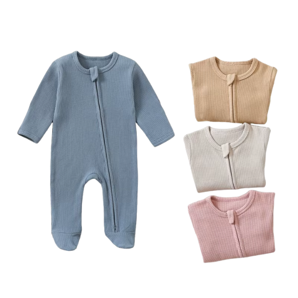 Macacão Bebê com Zíper – Tecido Waffle Confortável