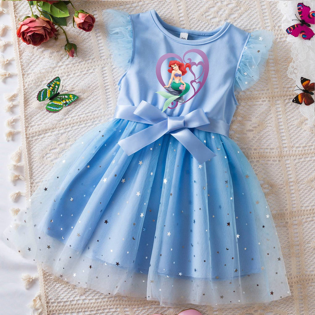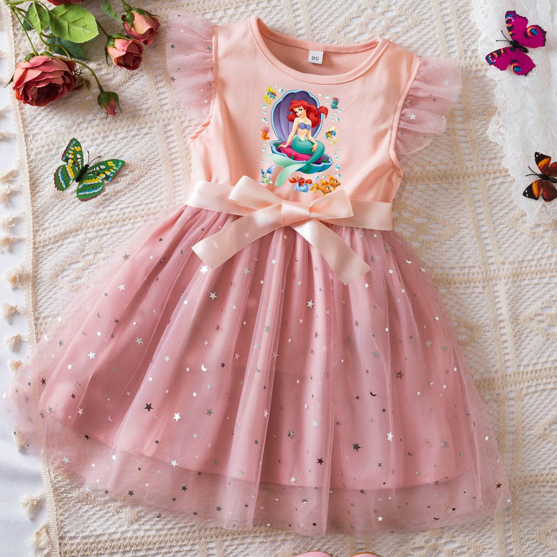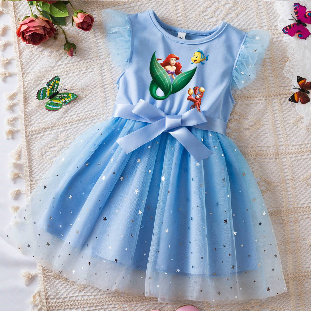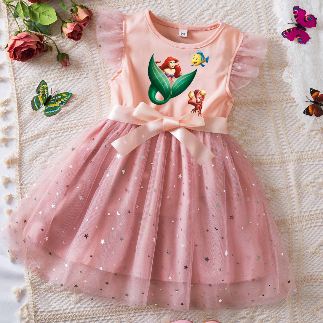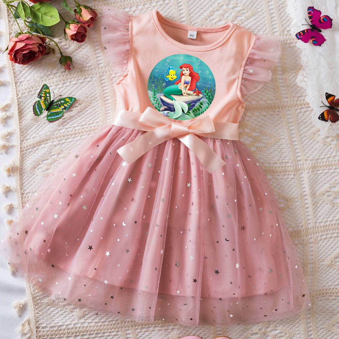 Vestido Infantil Pequena Princesa Sereia com Tule e Laço 🎀🌸