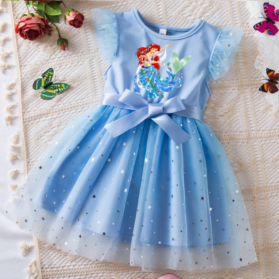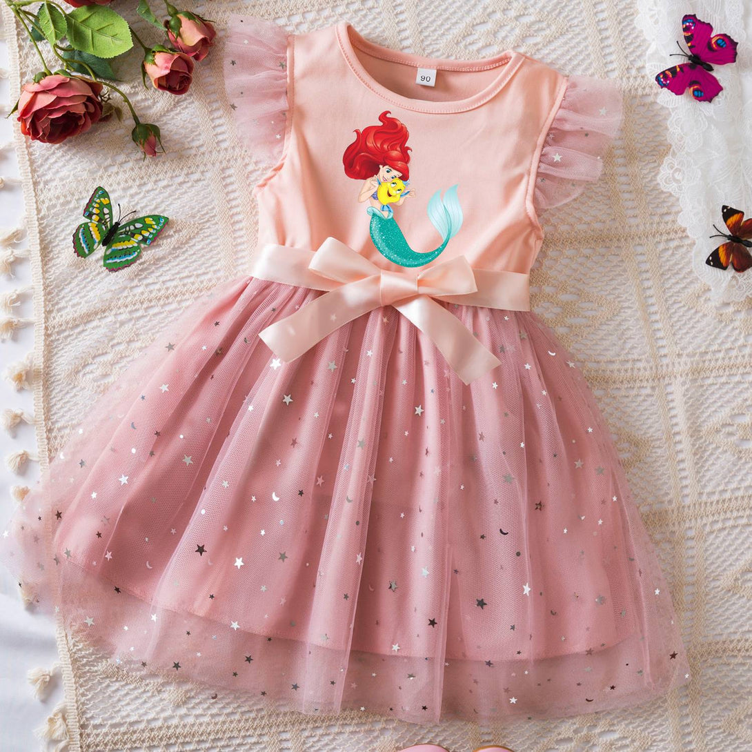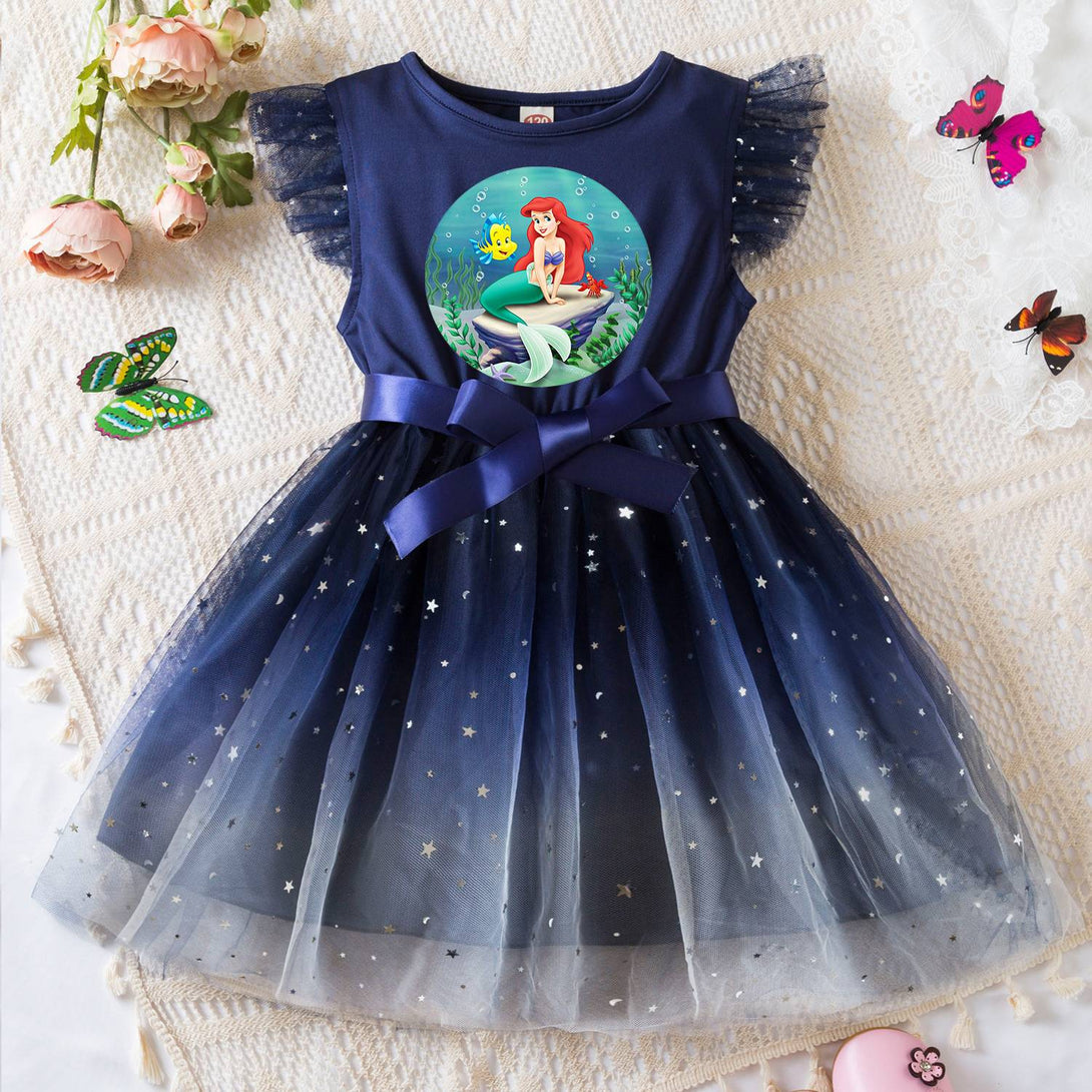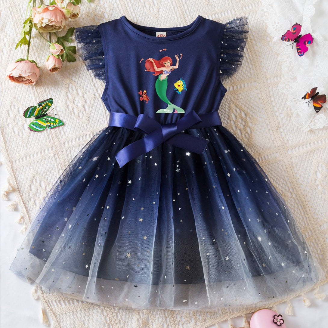 Vestido Infantil Pequena Princesa Sereia com Tule e Laço 🎀🌸