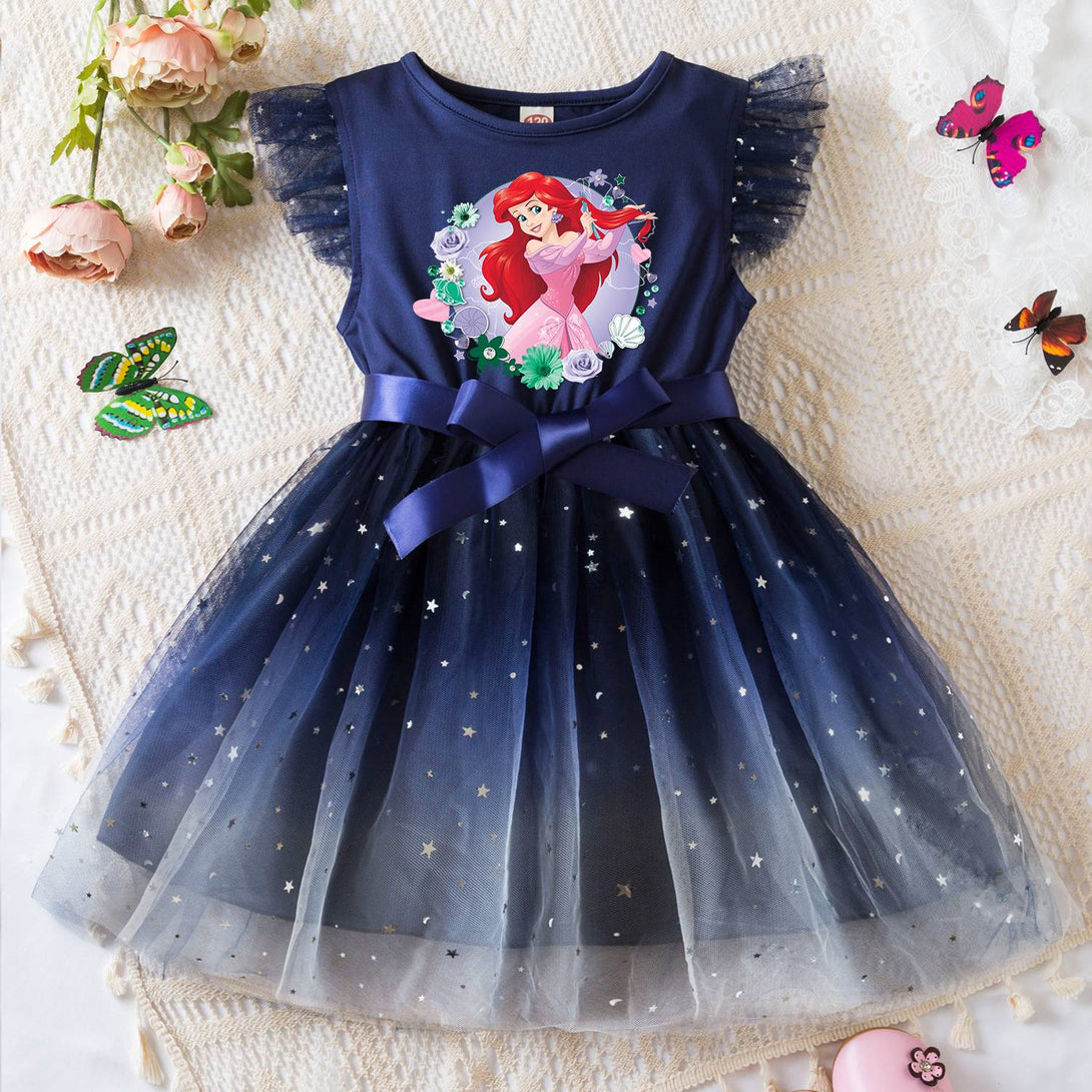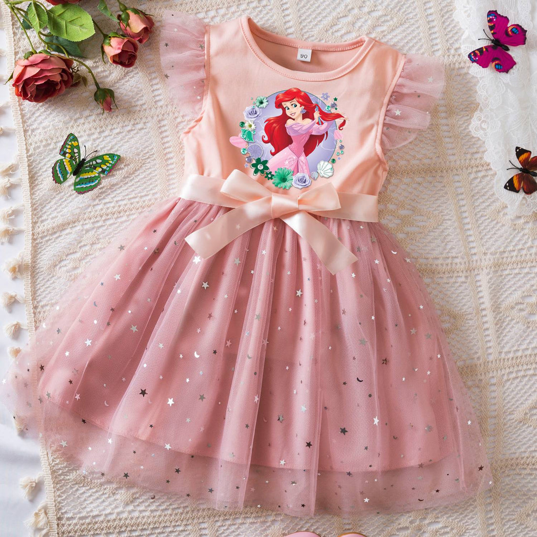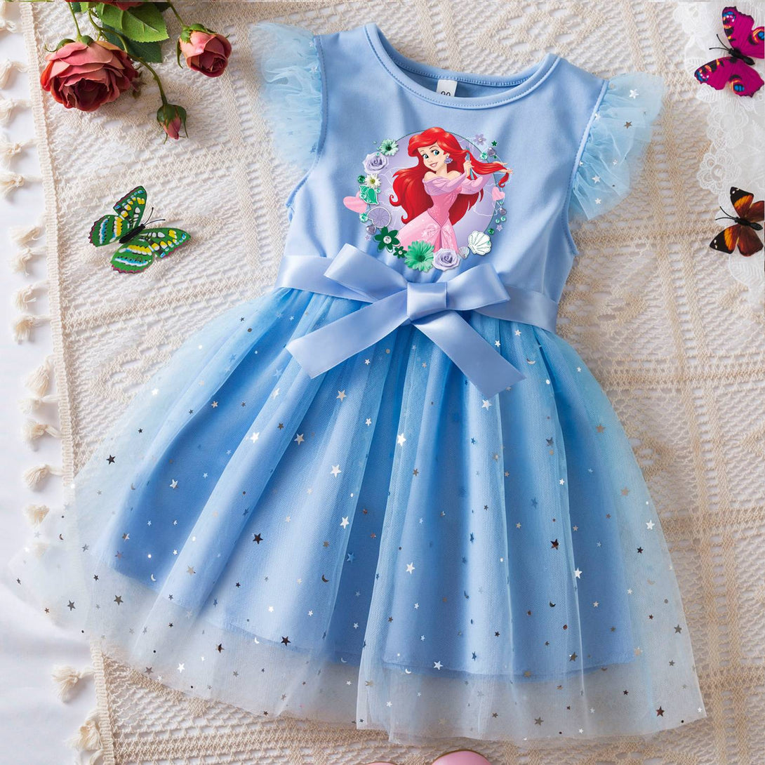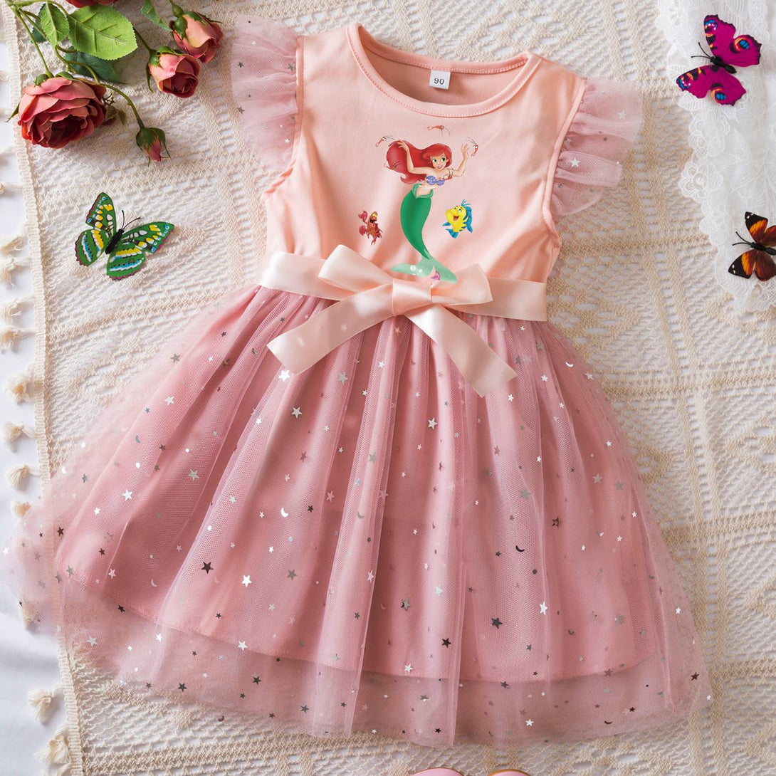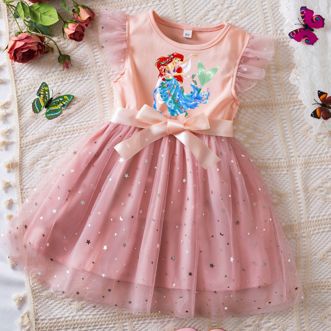 Vestido Infantil Pequena Princesa Sereia com Tule e Laço 🎀🌸
